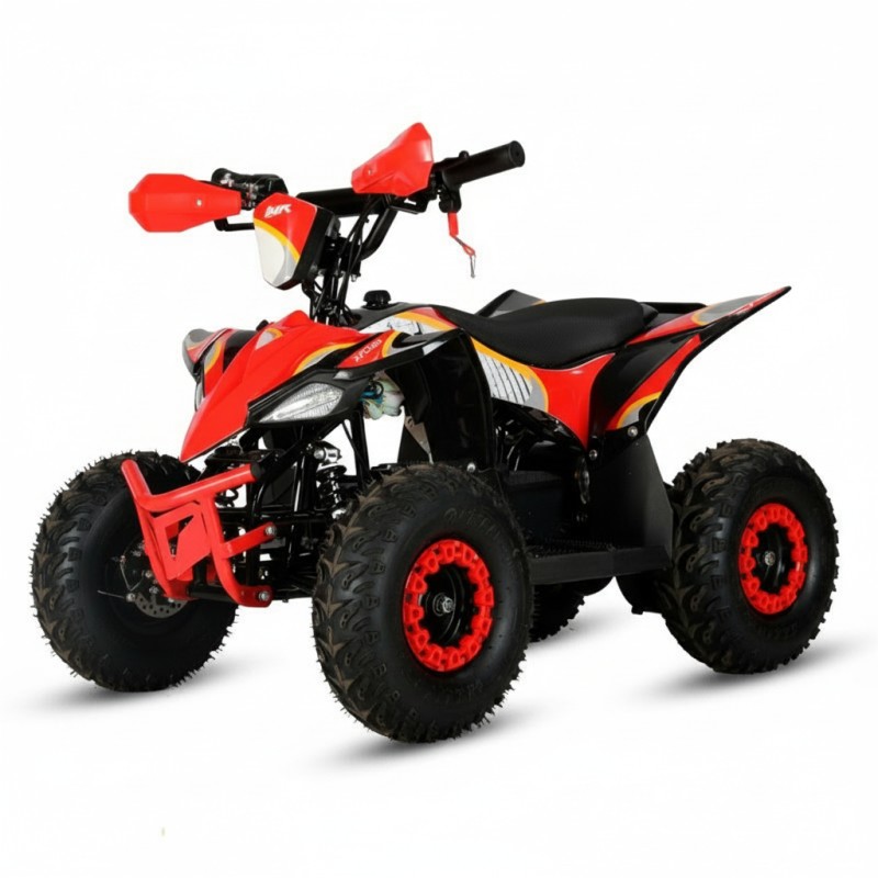 ¡El Mini Quad Eléctrico 1000W IMR Adventure que convierte cada paseo en aventura! Para niños de 3 a 9 años: motor 1000W, batería 3x12v/12AH (36V), cambio automático marchas adelante/neutro/atrás, ruedas de 6”, frenos de disco, luz LED y protector de cadena. Hasta 20km de autonomía (carga 6–8 h), asiento a 49 cm, soporta 80 kg.